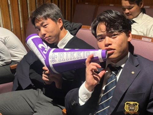山本晃太郎(1年・投手・島原):体育会応援団の4年生の皆さんの最後のステージということで、3部のそれぞれの良さが最高に出たステージだったと感じました。また、フィナーレのチャンスパターンメドレーにおいては団長の林田さんや、副団長の中村さんの熱い言葉とともに会場全体が一丸となって、一番の盛り上がりに包まれたところがとても印象的でした。体育会応援団の皆さん、最高の時間をありがとうございました!