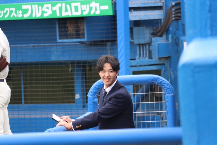チーフマネージャーを務めるのは、島抜康介(3年=日立一)。2025年下半期のマネージャーの長としてチームをまとめ上げる。彼は高い意欲と向上心を持ち合わせ、下級生の頃からすでに大きな存在感を示してきた。持ち前の愛嬌と明るさで、マネージャー・選手・指導者の橋渡し役としてチームの潤滑油となっている。時には自らの意見をはっきりと主張することもあるが、それはすべてチームのためであり、より円滑な運営を目指す姿勢の表れだ。常に反省と改善を繰り返し、前向きに行動している。1つ上の代でチーフマネージャーを任されるという重圧は計り知れないが、マネージャー全員の協力体制のもと、チーム木本の有終の美を飾りたいという思いで日々奔走している。来年度は連盟チーフマネージャーとしてさらなる活躍が期待される彼の成長と挑戦の姿を、ぜひ見守っていただきたい。(加藤珠海)