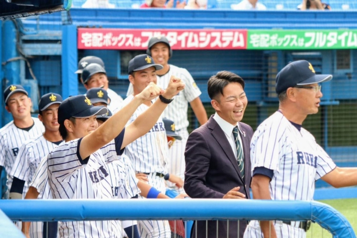 私たちの学年は4年間で一度も優勝できませんでしたが、同級生で主将だった加藤くんが後に野球部出身初の部長となり、2023年秋、ついに悲願のリーグ優勝、私が浪人時代に憧れた神宮大会優勝も果たしてくれました。このことは同級生にとって本当にうれしいことでした。