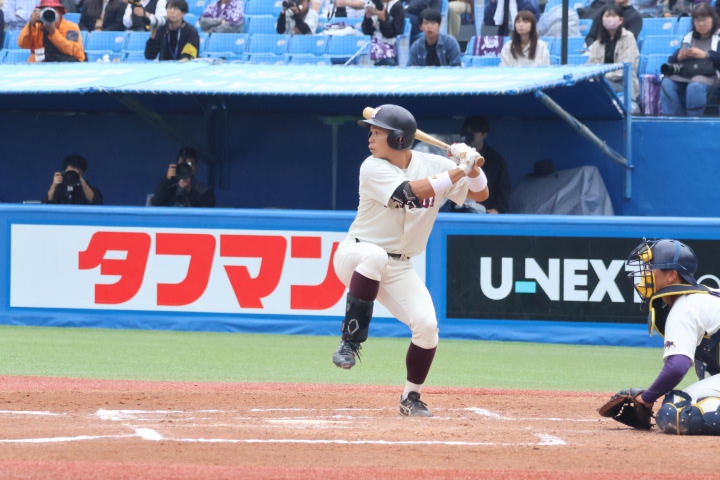 今季の秋のMVPとして、主将の西川侑志を推薦する。彼の最大の魅力は力強い打撃であるが、今季は打率2割前後と、決して満足のいく結果を残すことはできなかった。しかし、西川主将の真価は、むしろこの苦境において発揮された。彼は自身の成績に埋もれることなく、常にチームを最優先に考え、全員の先頭に立ち続けた。今季を振り返ってみると、一時は優勝の可能性を残しながらも、大一番での敗戦によりチームのモチベーションや雰囲気が沈滞しかけた時、彼のリーダーシップが光った。西川はチームメイトを力強く鼓舞し、チームを最終戦まで決して諦めずに戦い抜く集団へと変貌させた。この主将の「チームファースト」の姿勢に加え、副将の鈴木唯斗と吉野蓮がそれぞれひたむきに練習を重ねる姿を常に周囲に見せたことで、チームに素晴らしい相乗効果が生まれた。その結果、昨年と比較して自主練習に取り組む選手が圧倒的に増加した。野球は自主練習をした選手が即座に、そして必ず結果を出せるほど簡単な競技ではない。しかし、この西川世代の諦めない努力の文化は今後も受け継がれ、必ずや選手個々の成長、そしてチーム全体の好転という形で未来に結実することを願っている。(大場航誠)