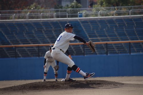 『大学初先発だったので初回の入り方を意識しました。小野太輔(1年・捕手・下妻一)とコミュニケーションを取りながら0に抑えることが出来て良かったです。課題も見つかるピッチングだったのでこの冬で成長出来るように頑張ります。』