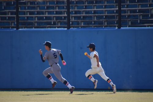 最終回。先頭の菊池、竹内歩夢(2年・内野手・日本工業大学駒場)に連続安打が飛び出します!その後、相手の野手選択や敵失の間に2点を追加し、さらに小野太のライトへの犠牲フライで1点を追加します!4-0