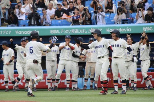 2番中村騎が振り逃げで出塁すると、3番松下が四球を選び、またしてもチャンスで4番井上和に打席が回ります。勝ち越しの1点が欲しい法政。ここでも見事にタイムリーを放ち、中村騎が生還します🔥