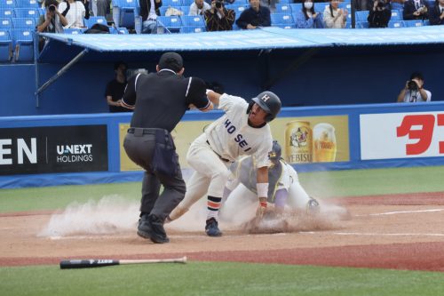 なんとしてでも得点を取りたい最終回。内山、浜岡陸(4年・外野手・花咲徳栄)と、2人の切り札を代打に送るも無得点に終わりました。