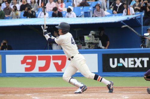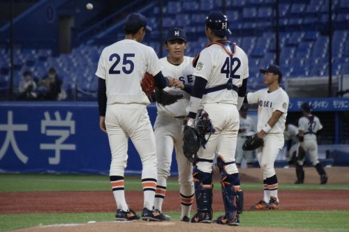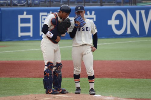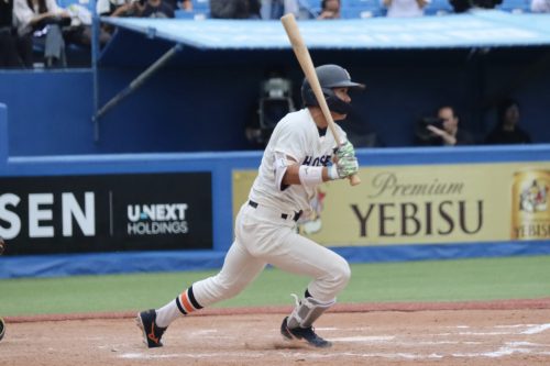 ここまで六大学トップの打率を残す1番藤森康が初回から出塁し、続く2番中村騎士(2年・内野手・東邦)がしっかりと送りバントを決め、得点圏にランナーを進めるも、得点に繋げられず終わります。