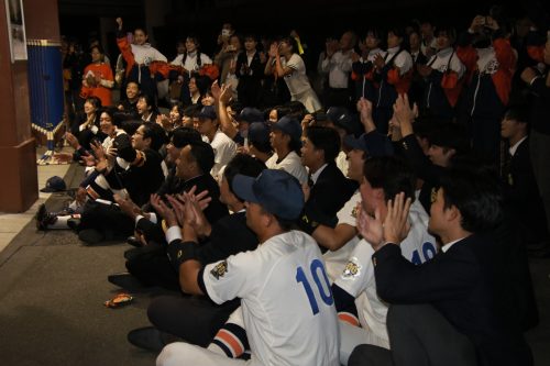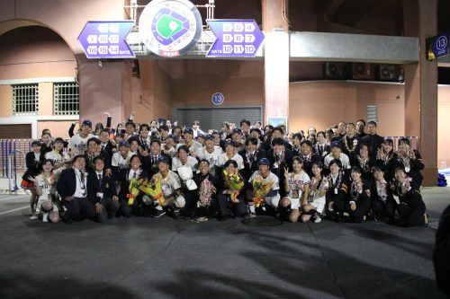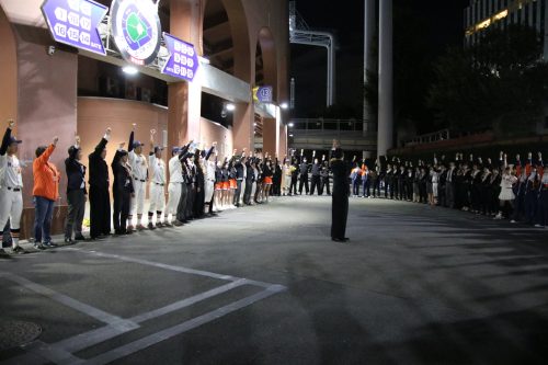 応援団によるチャンスパターンメドレー、全員での校歌斉唱・エール、記念撮影を行いました!🏟️📣