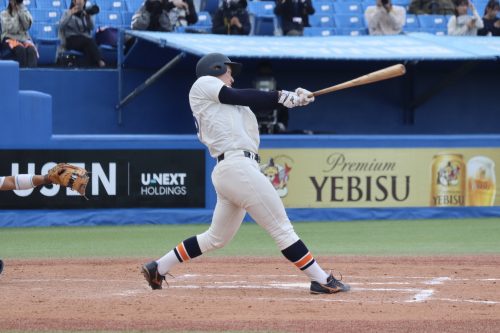 レフト前に打球を飛ばし、見事最後の打席にてリーグ戦初安打を記録しました!📝