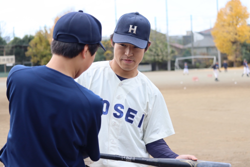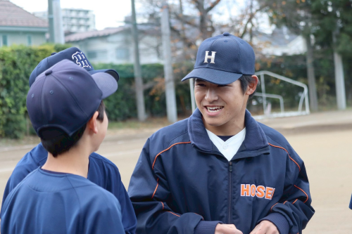 小金井野球教室は小金井市で野球をしている中学生を対象にした、法政大学理工学部(小金井キャンパス)で教授も務められている金光部長と部員による野球教室です。今年も法政大学小金井キャンパス近くの上水公園運動施設グラウンドで開催されました。『中学生』を対象にしているという点で、普段の野球教室と違い、より技術的な面にまで踏み込んで指導をする様子が非常に印象的でした。私は昨年も参加させていただいたのですが、昨年も参加してくれていた子も複数名おり、その子たちの成長した姿をまた見ることができた、というところも非常に感慨深かったです🙌💖