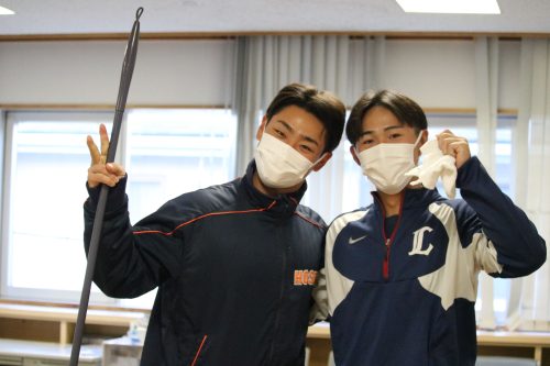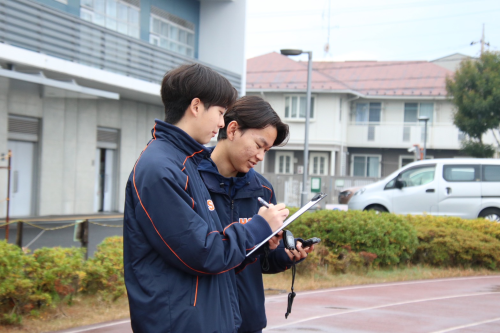 計測をする奥:小西朝陽(新2年・学生トレーナー・加藤学園暁秀) 手前:西山響一(新2年・アナリスト・都広尾)