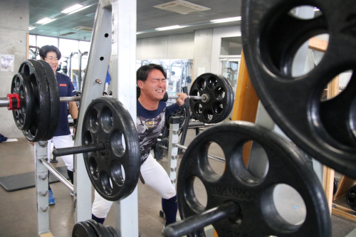 ウエイト場でトレーニングをする中西祐樹(新4年・捕手・木更津総合)