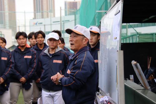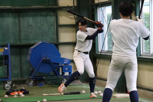 豊田明平(新4年・学生コーチ・法政)が檄を飛ばしながら一球一球気持ちを込めて打ち込んでいきます。