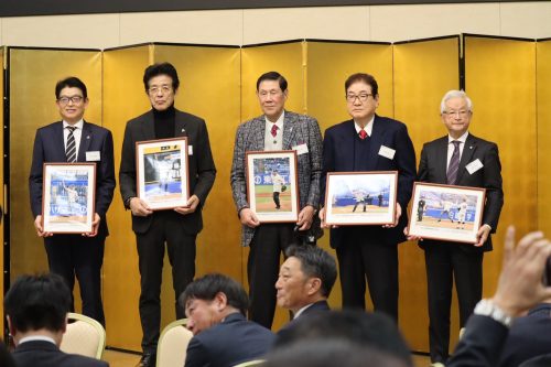 山中正竹氏、山本浩二氏(S44卒)、田淵幸一氏(S44卒)、江本孟紀氏(S45卒)の皆さまに、小早川会長より記念品が贈呈されました⭐️