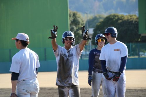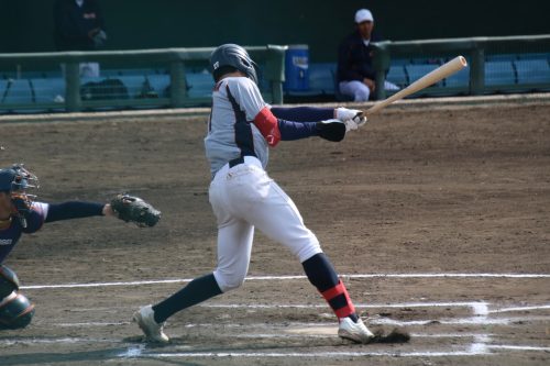 今泉秀:「ライトフライだと思いましたが、風が吹いていたのもあり上手く打球が乗って切れたのでよかったです。ソーンに来たボールに対して積極的に仕掛けることができ、その中でアジャストできた打席が多くあったので良かったと思います。」と話してくれました。