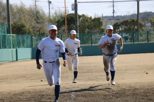 ➡️ノック終了後、走り込みをする内野手3人の姿を激写!左から西村大和(新2年・内野手・報徳学園)、小川大地(新3年・内野手・大阪桐蔭)、金谷竜汰(新4年・内野手・東海大菅生)