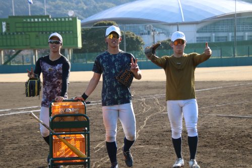 ➡️外野手トリオで1枚左から石井翔大(新3年・外野手・札幌日大)、山田頼旺(新2年・外野手・中京大中京)、豊田凌平(新3年・外野手・鳴門)