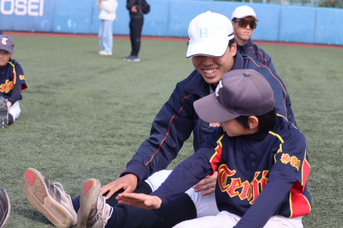 外野手では、山田 頼旺(新2年・外野手・中京大中京)が優しい眼差しで、小学生の目線に立ちながら教える様子が見られました👀