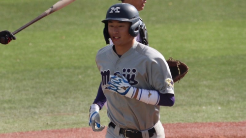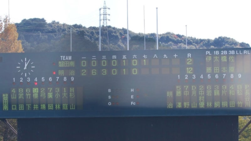 さらに明治打線の勢いは止まることなく、1年・月山(浦和学院)走者一掃となるレフトへのタイムリースリーベースヒットで3点、続く2年・中野(桐蔭学園)ツーランホームランで2点を追加します!