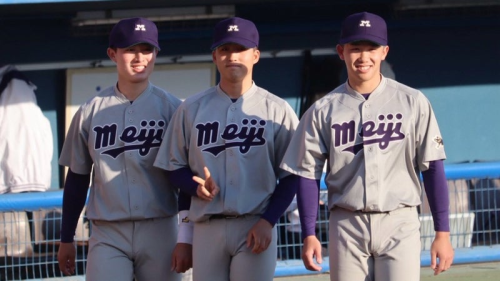 第8回大学野球オータムフレッシュリーグの開催にあたり、ご尽力いただいた全ての関係者の方々に心より感謝申し上げます。静岡という地で、普段対戦することの少ない相手と試合する機会をいただけたこと、大変嬉しく思っております。来年以降に繋がる貴重な学びの場となりました。今大会での反省を生かし、次のシーズンに向けてより一層成長できるよう、全員で練習に励んでまいります。今後とも明治大学野球部への変わらぬご支援、ご声援のほど、よろしくお願いいたします。」