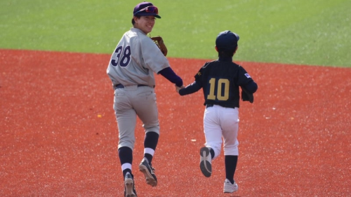 この試合の5回終了後に、日本大学国際関係学部とのリレー対決が開催され、1年・大泉(愛工大名電)巴田(智辯学園)吉田海(明大中野)の3名が外野芝生グラウンドを走りました🏃🏻‍♂️