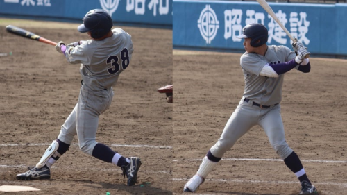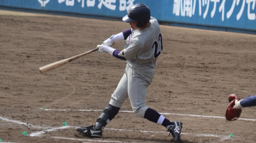 1点ビハインドで迎えた5回裏、1アウトから新2年・二坂(国士舘)レフトへのヒット新1年・山岡(報徳学園)ライトへのヒットで一、二塁とすると、1アウトを挟み、新2年・石島(愛工大名電)右中間へのタイムリーツーベースヒットを放ち、逆転に成功します!