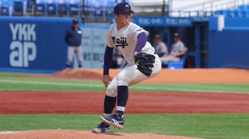 この回からは、1回戦、2回戦ともに好リリーフを見せている3年・中村海(明大中野)がマウンドに上がります。