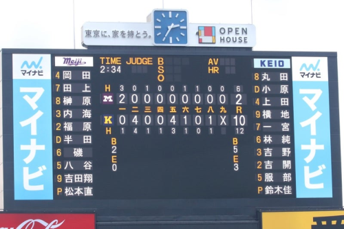 初回に2点を先制するも、その後は投手陣が踏ん張りきれず、被安打や四球、守備の乱れで流れを失い、二桁失点を喫し、大敗。春季リーグ戦2週目で勝ち点を落とす悔しい結果となりました。