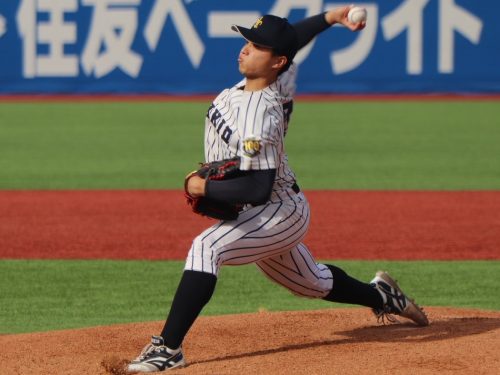 7回裏、三番手の 松岡啓太(1年・投手・立教新座) は、一死から左前安打で出塁されると、後続に連続適時打を浴び2失点と勝ち越しを許します。次打者に左前安打を許したところで、四番手 中村流彗(1年・投手・桐蔭学園) にマウンドを託します。しかし、中村流 は3つの四球を与え、押し出しで2点を失い、降板します。五番手の 中村雄太(2年・投手・長崎西) は、後続を三振に斬りこの回を切り抜けます。