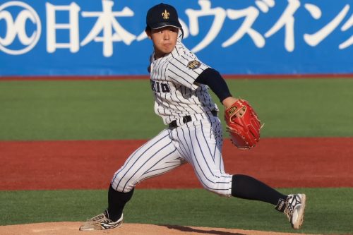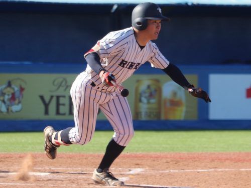 2回裏、一死から五番 住井力(2年・外野手・立教新座) が中前安打を放ち、六番 北野雄大(1年・内野手・鎌倉学園) の併殺崩れと盗塁で好機を作ると、七番 森木悠登(2年・内野手・東筑) の適時右前安打で1点を先制します。