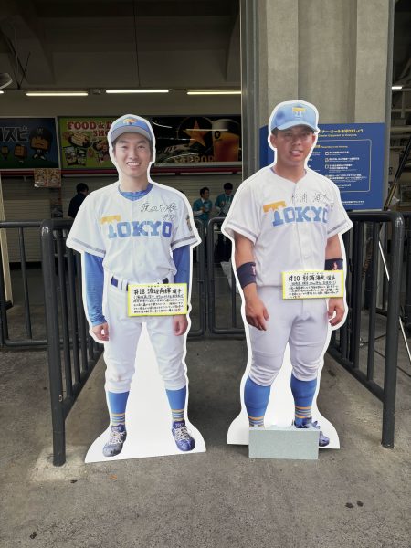神宮球場応援席に東大野球部の主力選手の等身大パネルを設置しています!