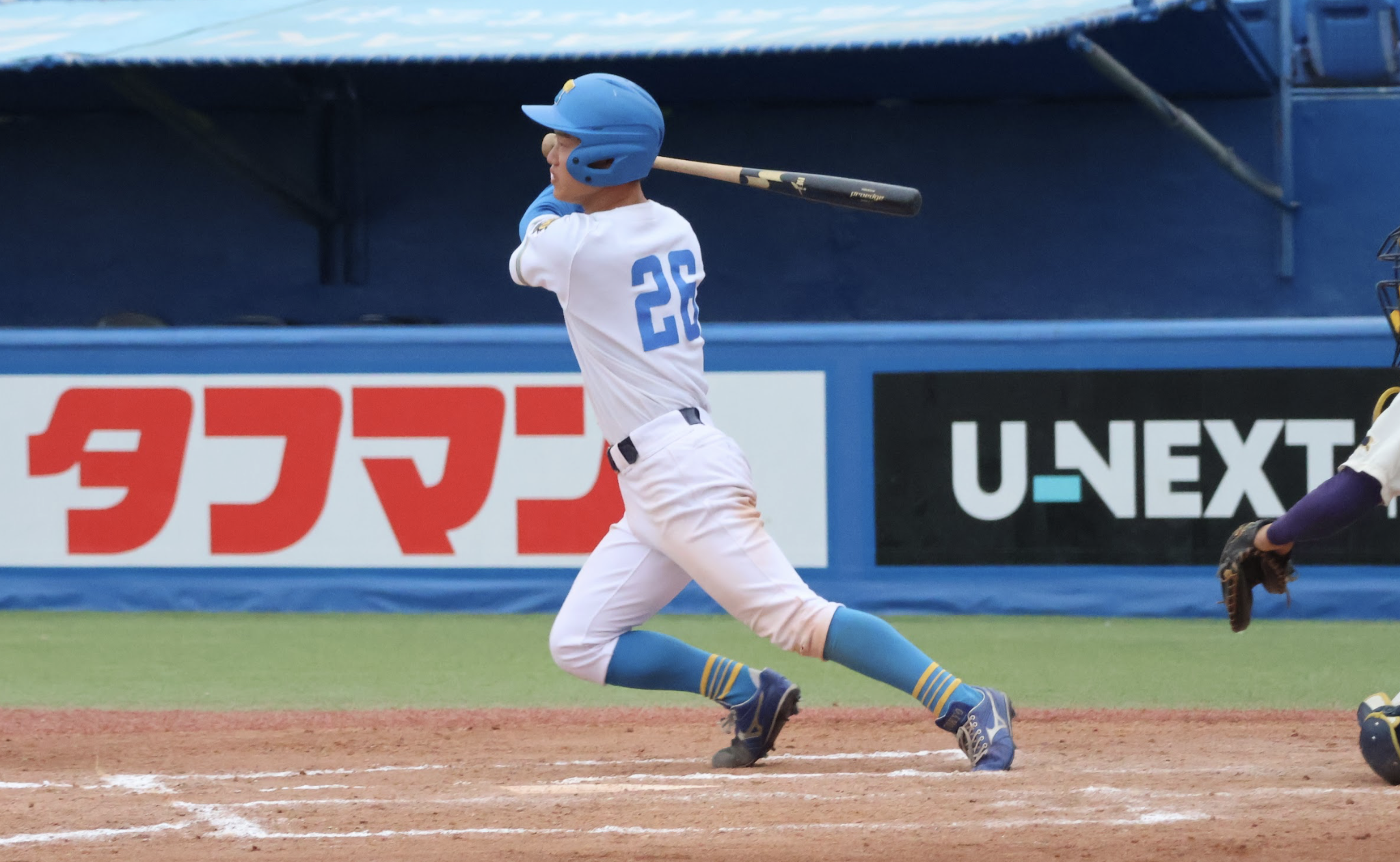 続く横井内野手(2年/市立向陽)がタイムリーツーベースヒット!