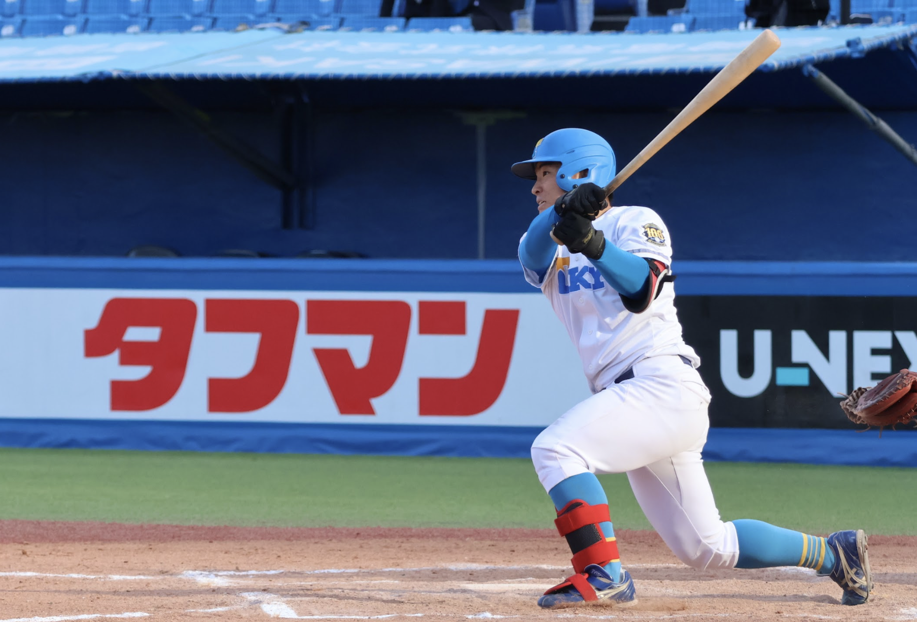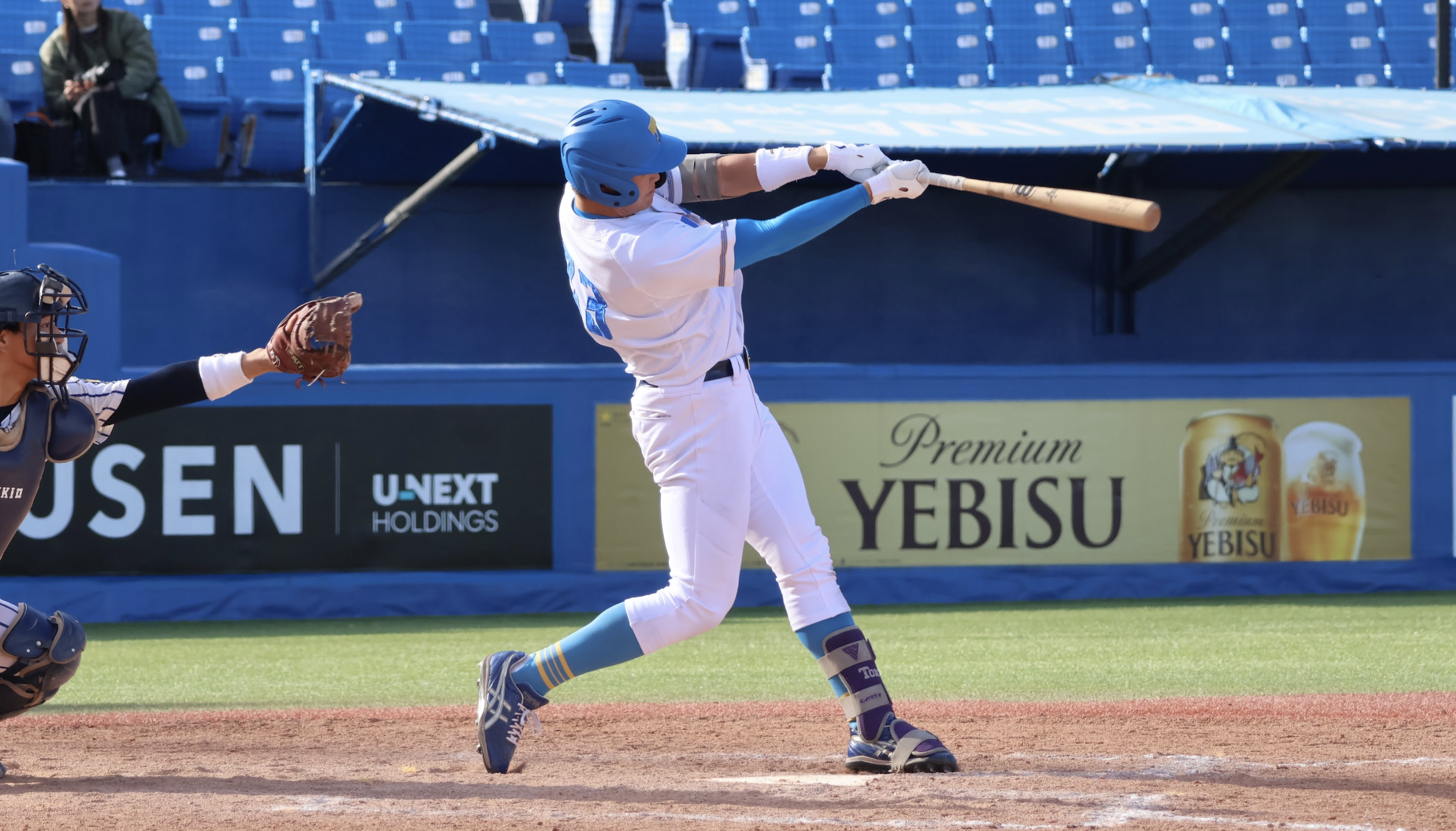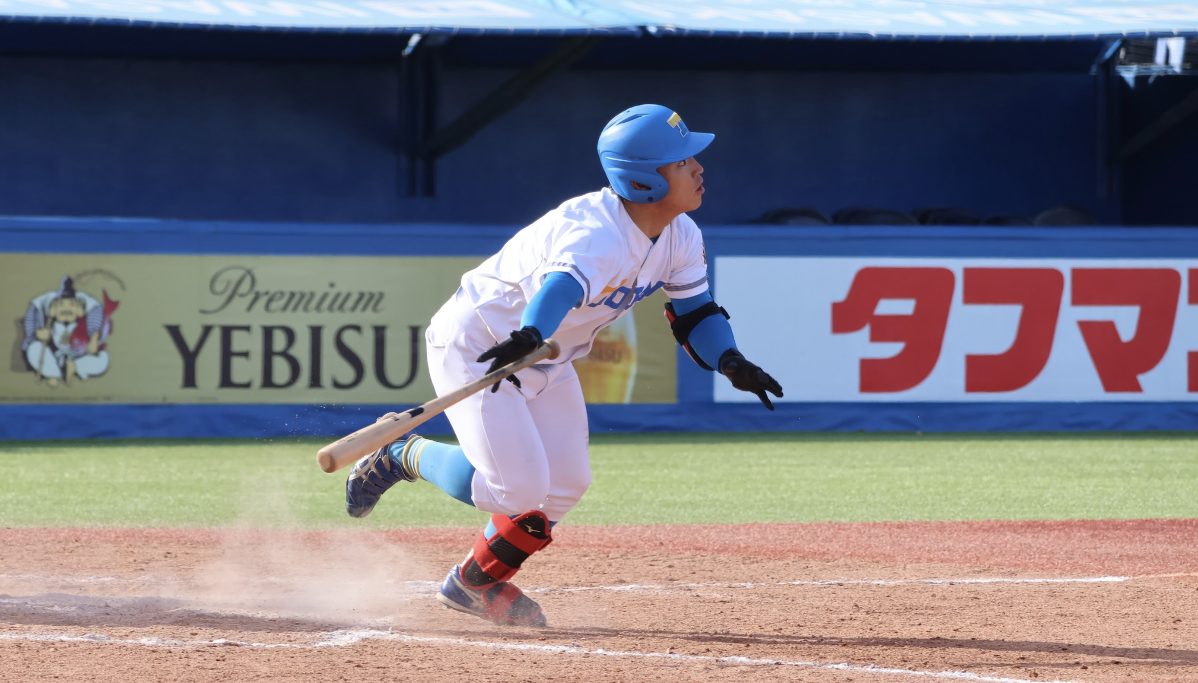 9回表は先頭の大沼亜斗夢内野手がツーベースヒットを放ちます!