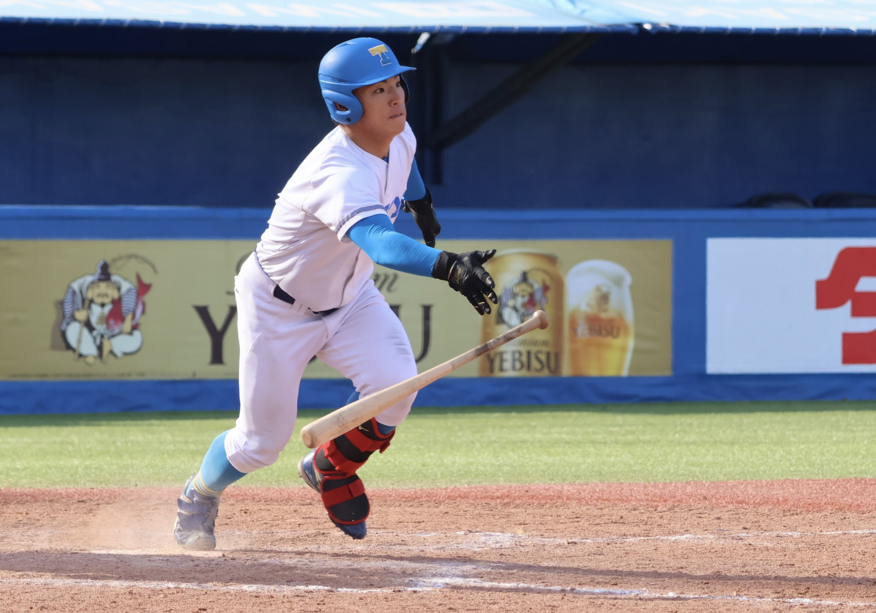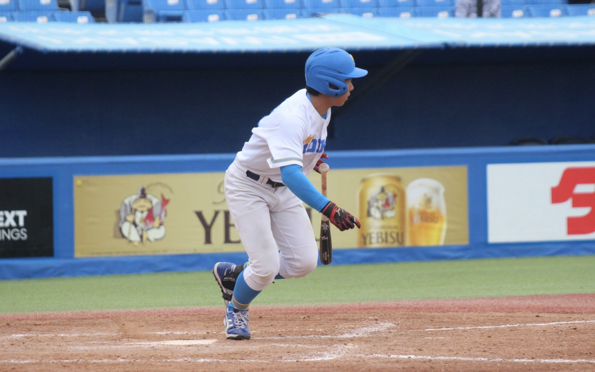 1回裏、先頭の俊足・安田外野手が内野安打を放ちます!