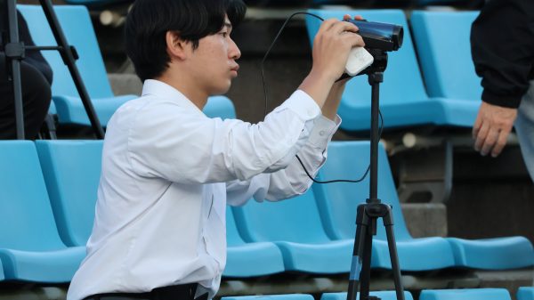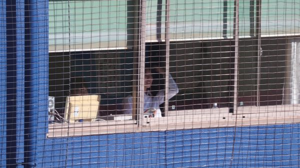 ▲【試合中に動画を撮っていた西山慶アナリスト】