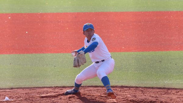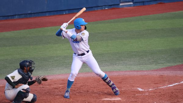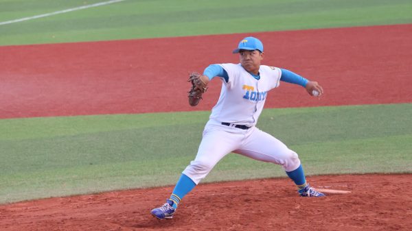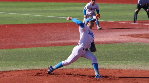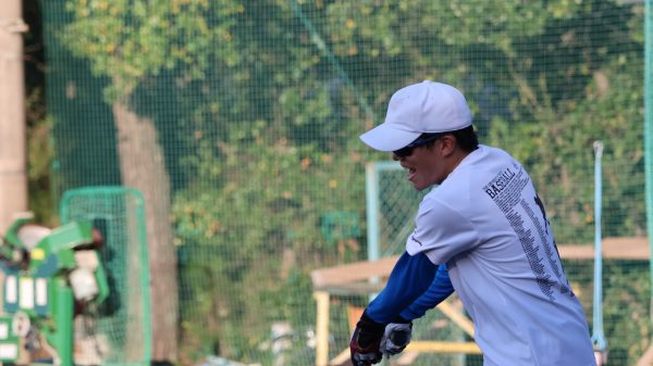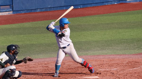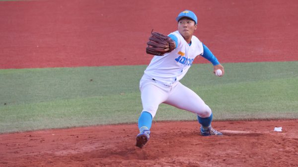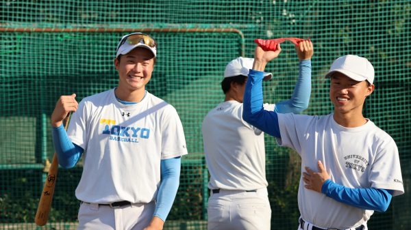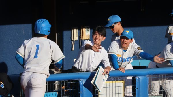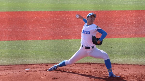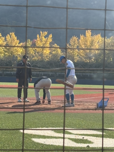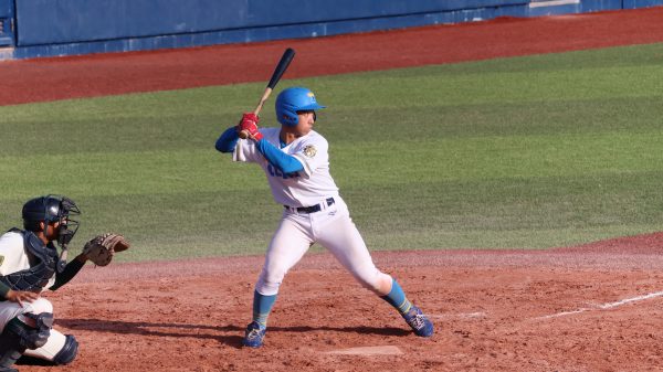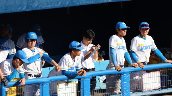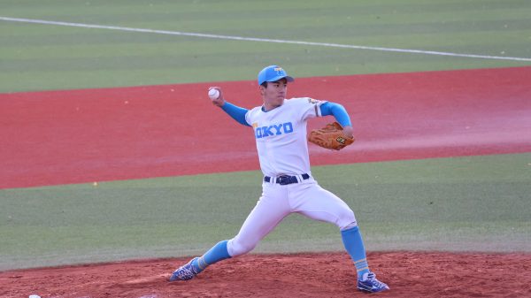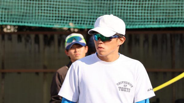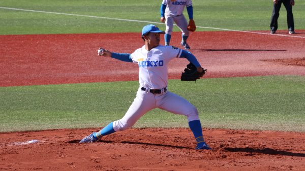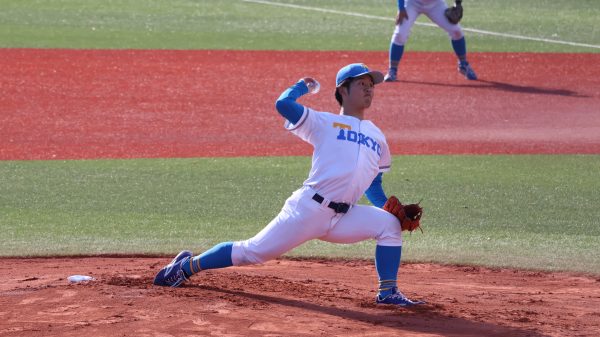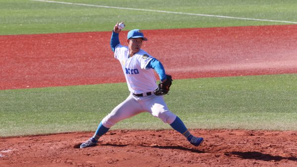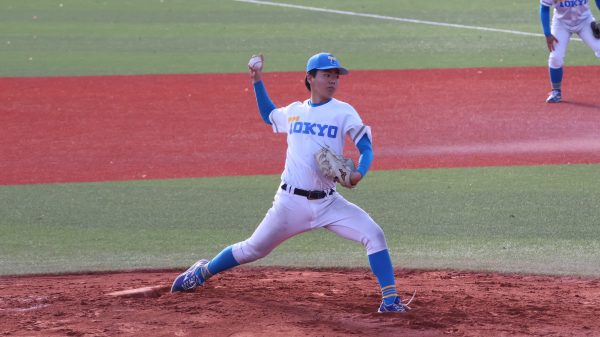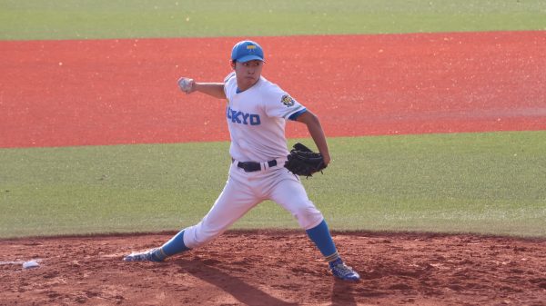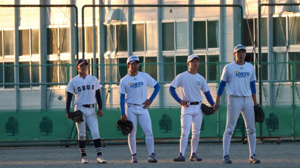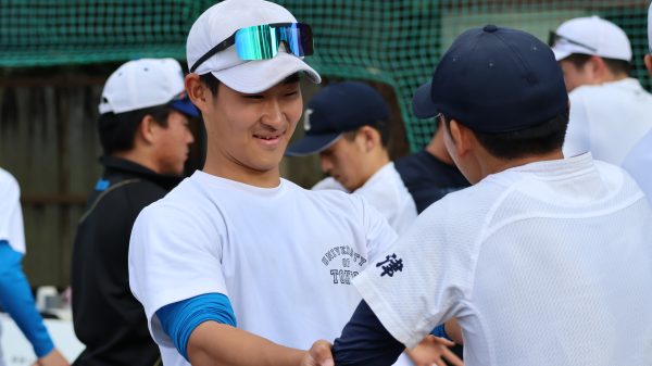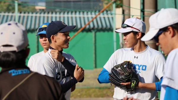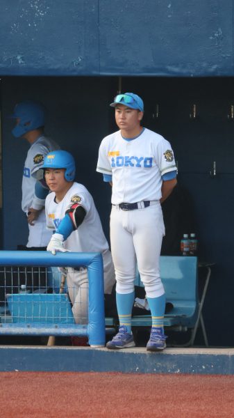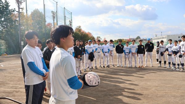 ▲オータムの企画チーム(オータムの企画と運営などを担当している学生チーム)として、今回の合同練習を実現してくれた昼馬投手(2年/日比谷)。