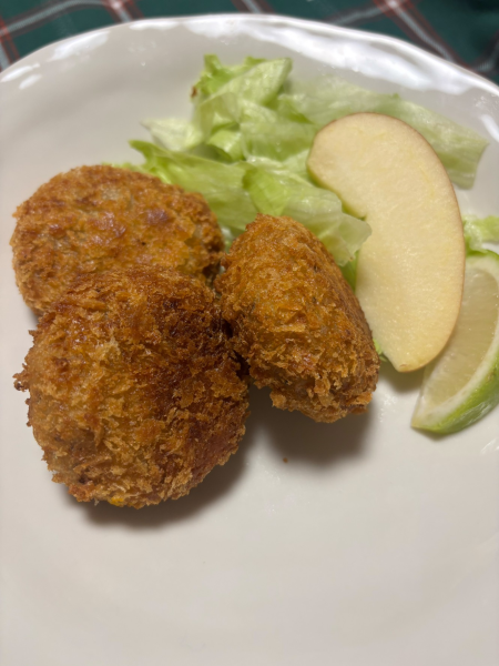(「コロッケの写真をブログに載せるよ」とママに言ったら、「ミニトマト買っとけばよかったのに」「もっとおしゃれな野菜あればいいのに」「この写真じゃ私のコロッケのおいしさが伝わらないから載せないで」と言われました。写真だと伝わらないかもしれませんが涙が出るほどおいしかったです。ママ、ありがとう)