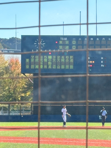 そして5回表から登板したのは中根投手(1年/筑波大駒場)。落ち着いた投球で、早速スリーアウトチェンジ!