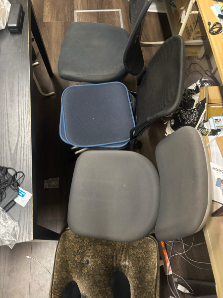 ▲【椅子を四つ並べて簡易ベッドを作ろうとしたのですが、微妙に高さが違って体が安定せず、さらに夜はかなり冷え込んで、ほぼ一睡もできませんでした。