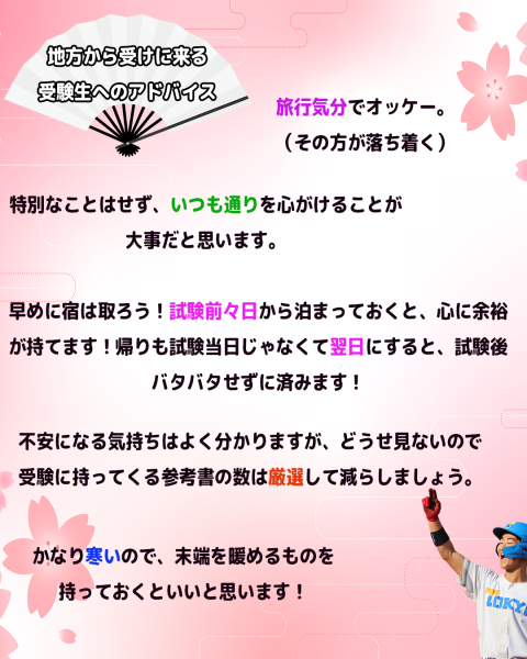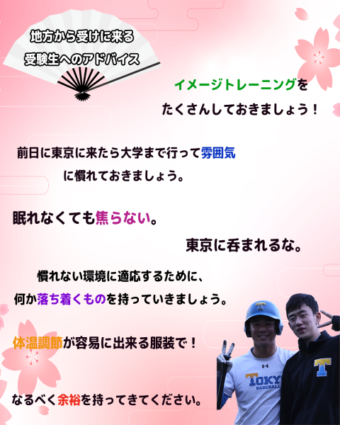 そして、何といっても東大野球部は全国から人が集まる部。地方出身の部員たちに、実家を離れて東大を受ける受験生へのアドバイスを聞きました!