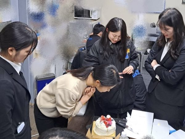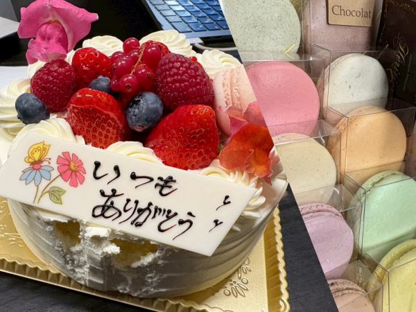 西山慶アナリスト(新3年/市立南)から同期女子スタッフには、ケーキが贈られました🍰