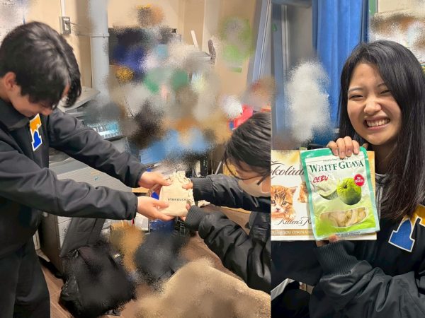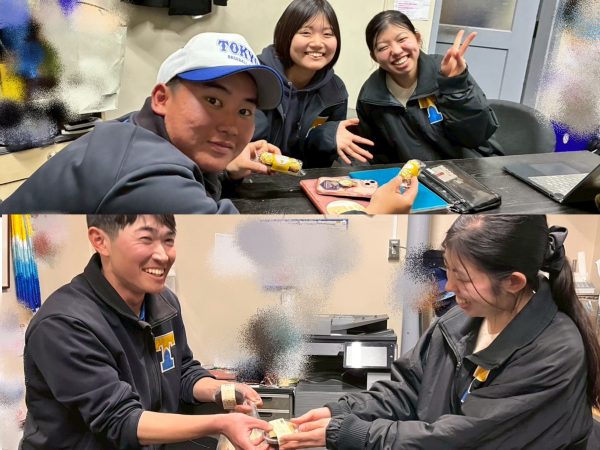 【左は金澤アナリスト(新2年/大宮)から、右は鏡アナリスト(新2年/日比谷)からのお菓子です。