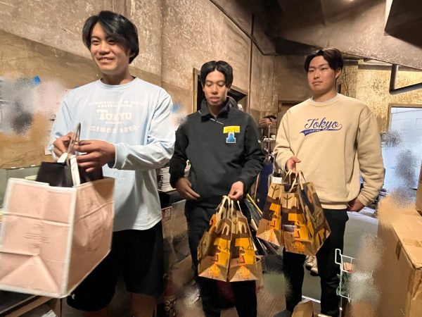 【大量の紙袋を持って現れた3人組