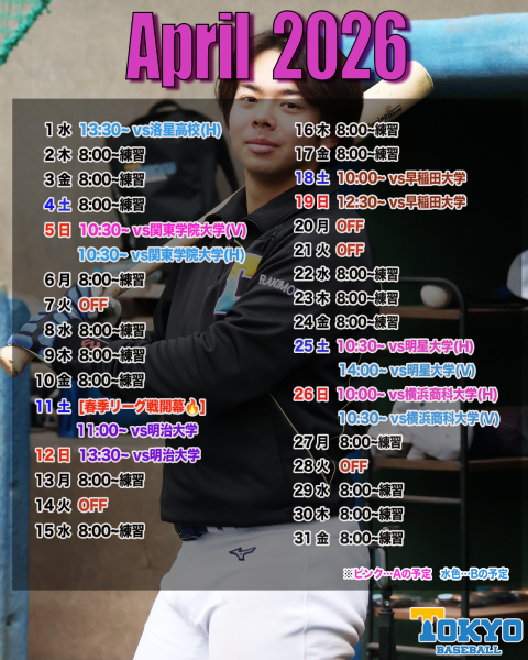 いよいよ今月11日から春季リーグ戦が開幕いたします。
