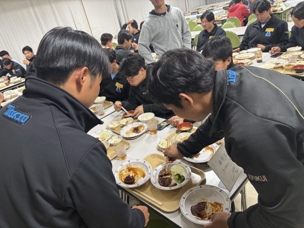 座談会の後はスタジアムを出発します。僕は選手たちと一緒に宿泊するJA教育センターへ、大沼マネージャー、樫野アナリスト(2年/並木中等教育)、米林アナリスト(2年/渋谷幕張)は石井助監督と一緒に交流会へ向かいました。