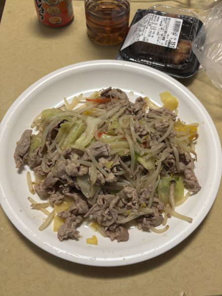 作ったのは「野菜炒め」味付けは甘口醤油です。