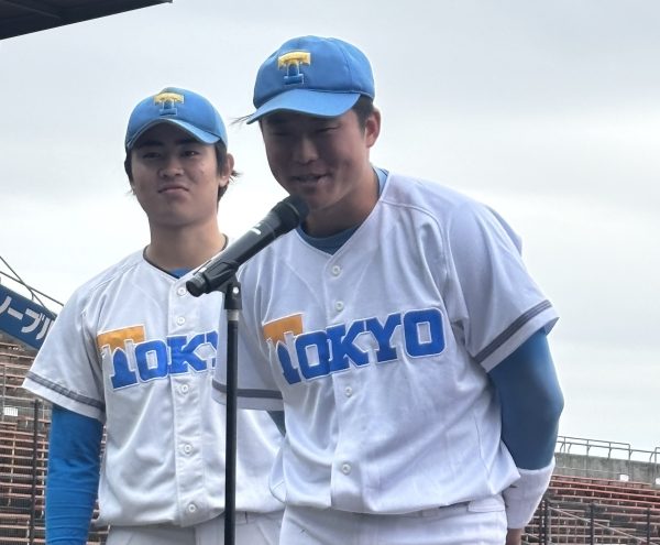 勝利した東大のヒーローは3打点を挙げた荒井外野手と先発して3回無失点の玉置投手です。