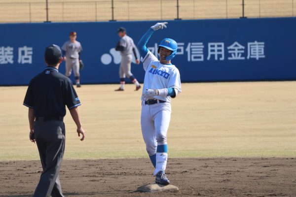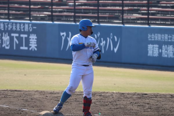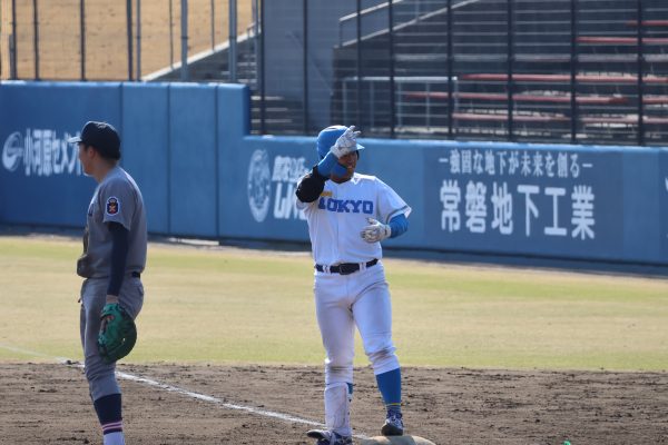 1番安田外野手(3年/名古屋)、2番秋元内野手(3年/市川)の2連打でノーアウト1,2塁のチャンスを作ります。