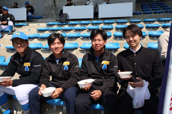 試合の前に昼食の様子をお届けします!この日の昼食はJAのスタッフさんによる炊き出しでした!