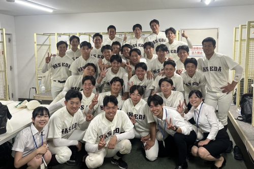 私が今、早稲田の一員として活動できているのは、世田谷西シニアの先輩である、翔太郎さん(田中翔太郎・R7卒)・生沼さん(生沼弥真人・R6卒)・梅さん(梅村大和・R7卒)のおかげでもあると思っています。先輩方が早稲田で活躍している姿を見てきたからこそ、私も早稲田を目指し続けられたと思います。受験前にも相談に乗ってもらいありがとうございました。可愛げのない後輩ですが、いつか翔太郎さん主催で「せたにし飯」に呼んでいただけると嬉しいです。