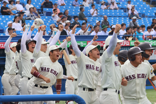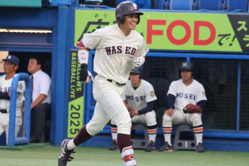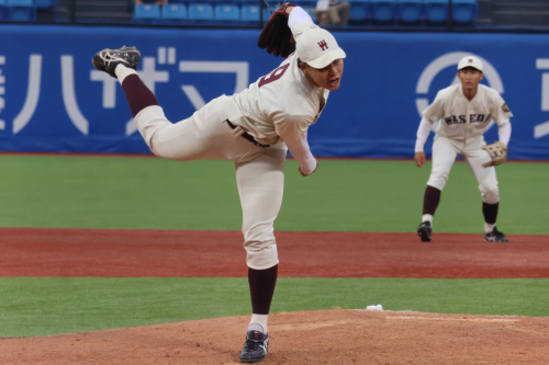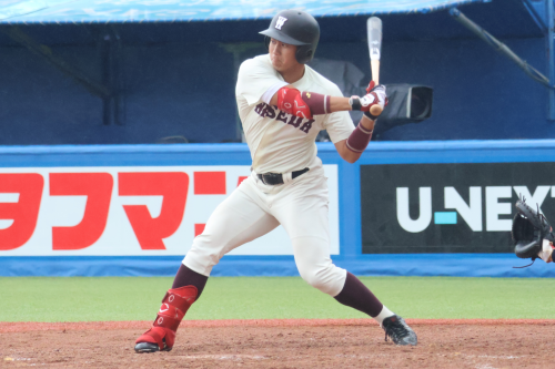 この勢いのまま抑え、逆転したい早稲田でしたが、9回表に四死球からピンチを広げると連打で2点を奪われ、6-8と逆転されてしまいます。9回裏にもチャンスを作りますが、あと一歩及ばず6-8で敗戦してしまいました。