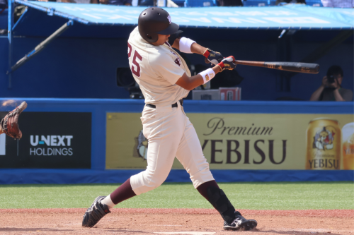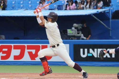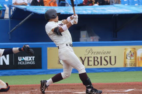 7回表、安田虎汰郎(2年・投・スポ・日大三)がランナーを出しながらも無失点で抑えると、その裏、田村康介(4年・内・商・早大学院)の四球、石郷岡大成(4年・外・社会・早稲田実)の安打でチャンスを作り、吉田瑞樹(4年・捕・スポ・浦和学院)の適時打で1点を返します。